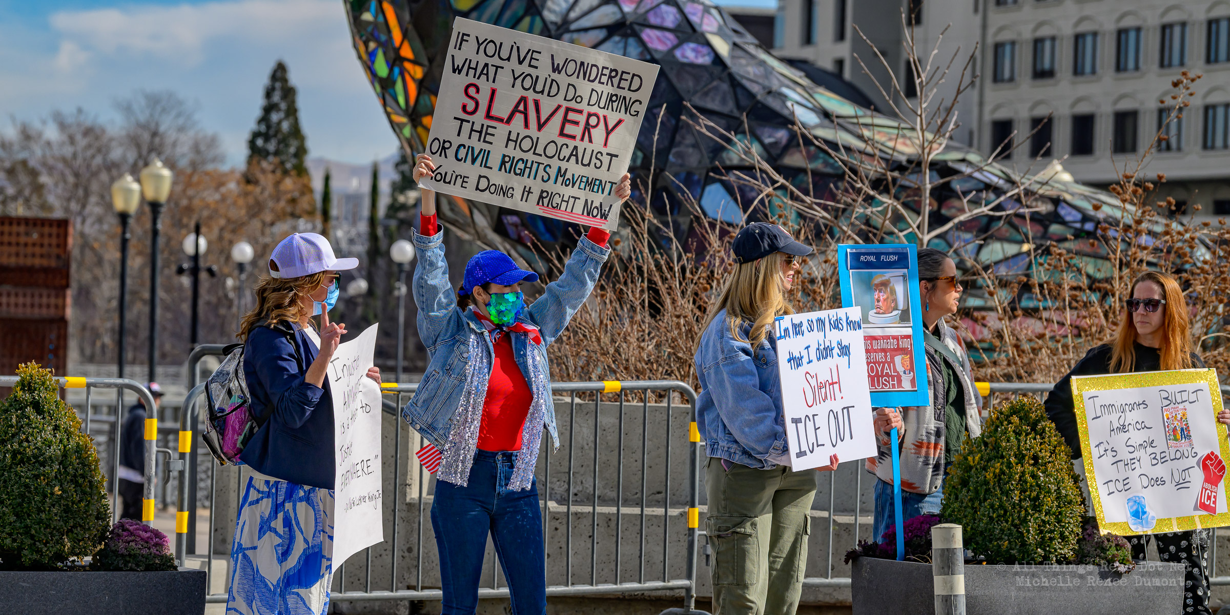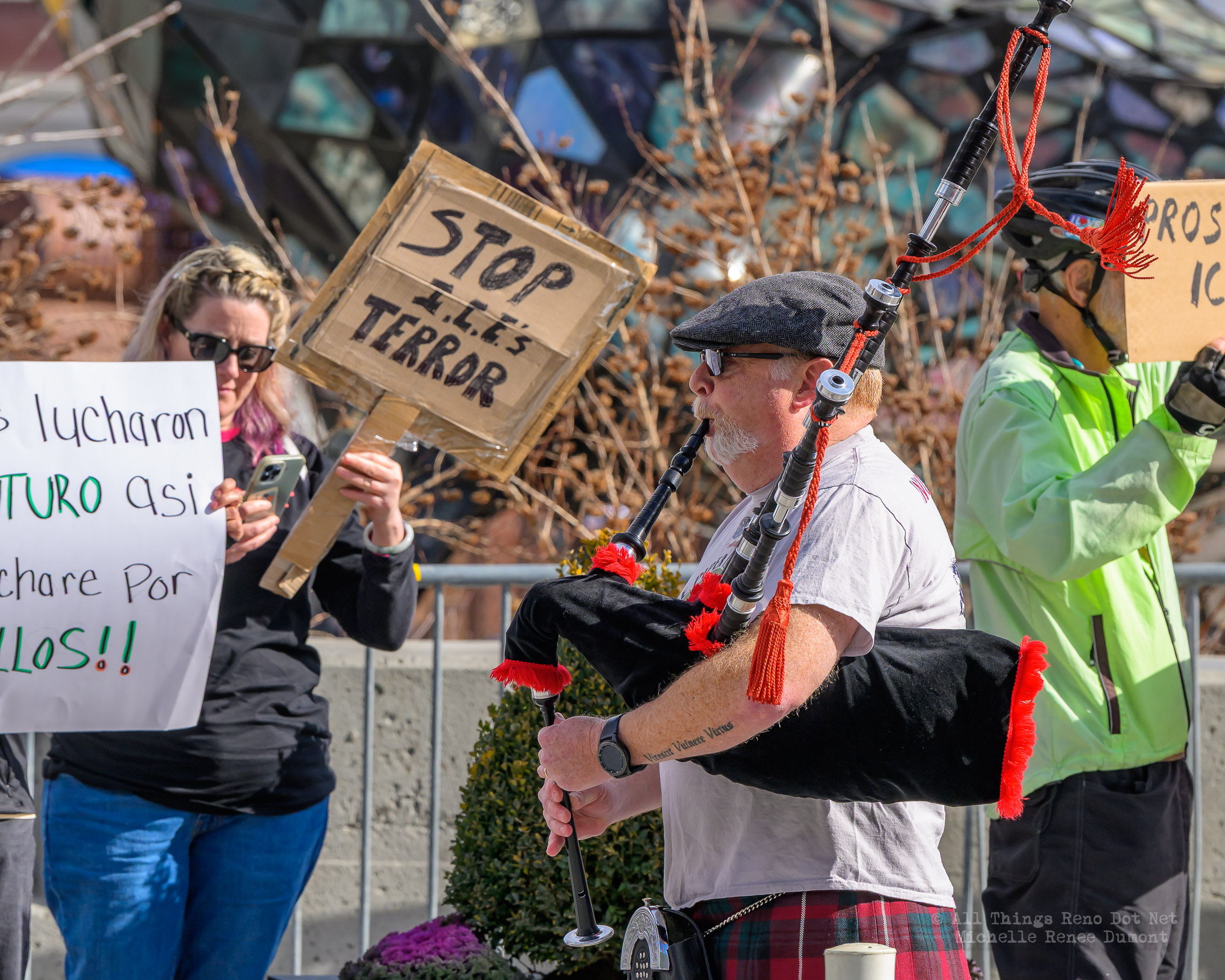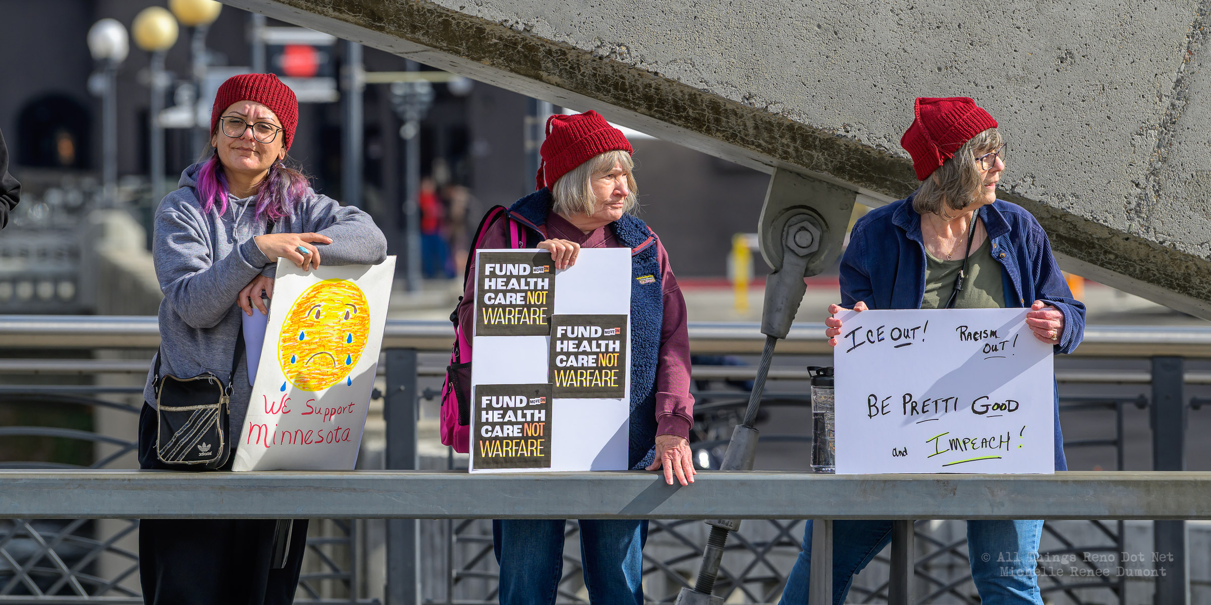 We had another Ice protest downtown, where I estimate about a hundred angry Seniors gathered on the plaza across from City Hall to demonstrate their displeasure with the Trump administration and the DHS tactics of disappearing people without as much as an arrest warrant. I say “angry Seniors” because Law Enforcement warned protesters in a presser to keep their protests respectful and peaceful, or else. I’m sure those crazy Seniors attending today’s protest took that warning to heart. But there was a police presence, just in case, to ensure a peaceful event.