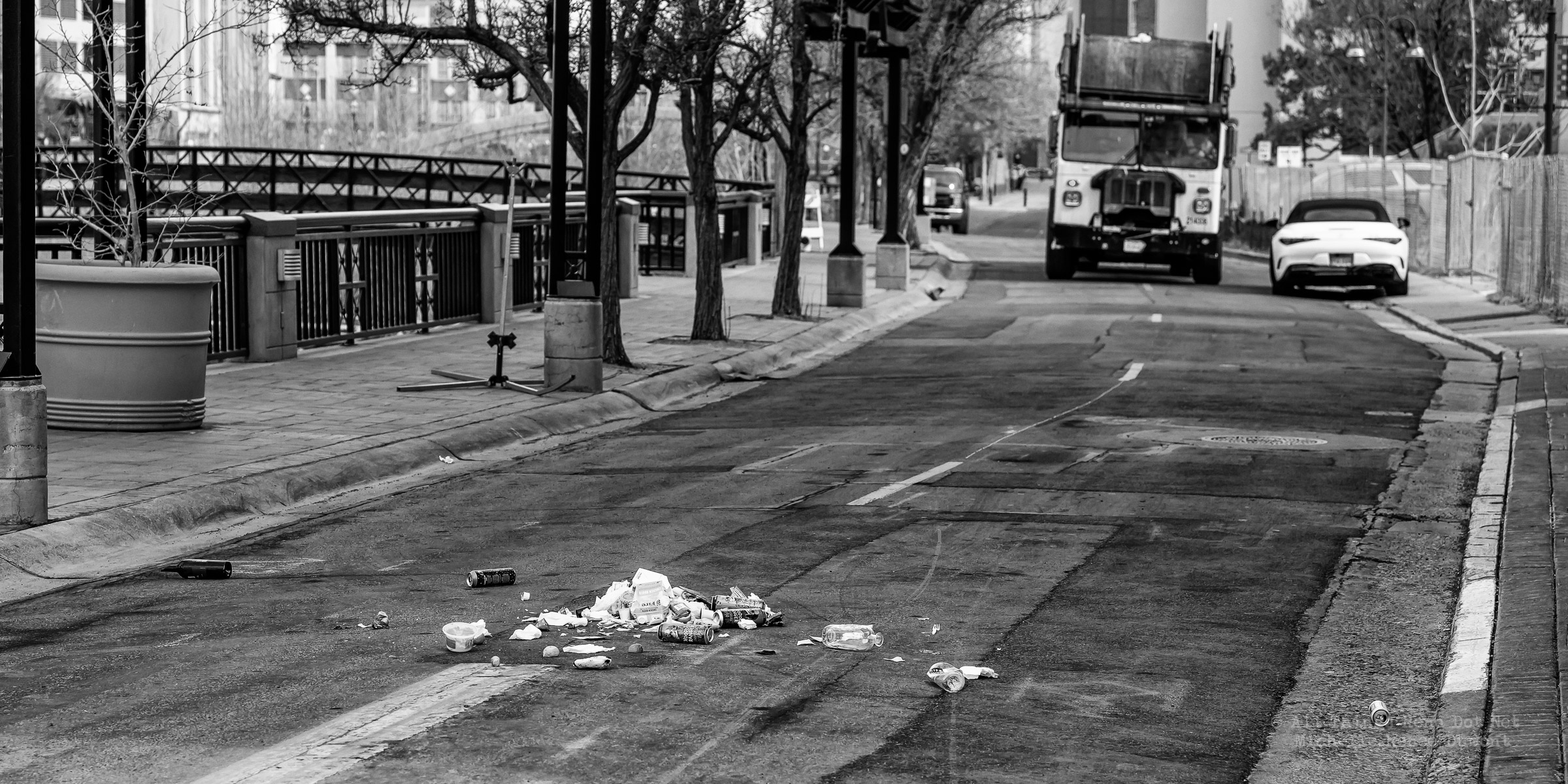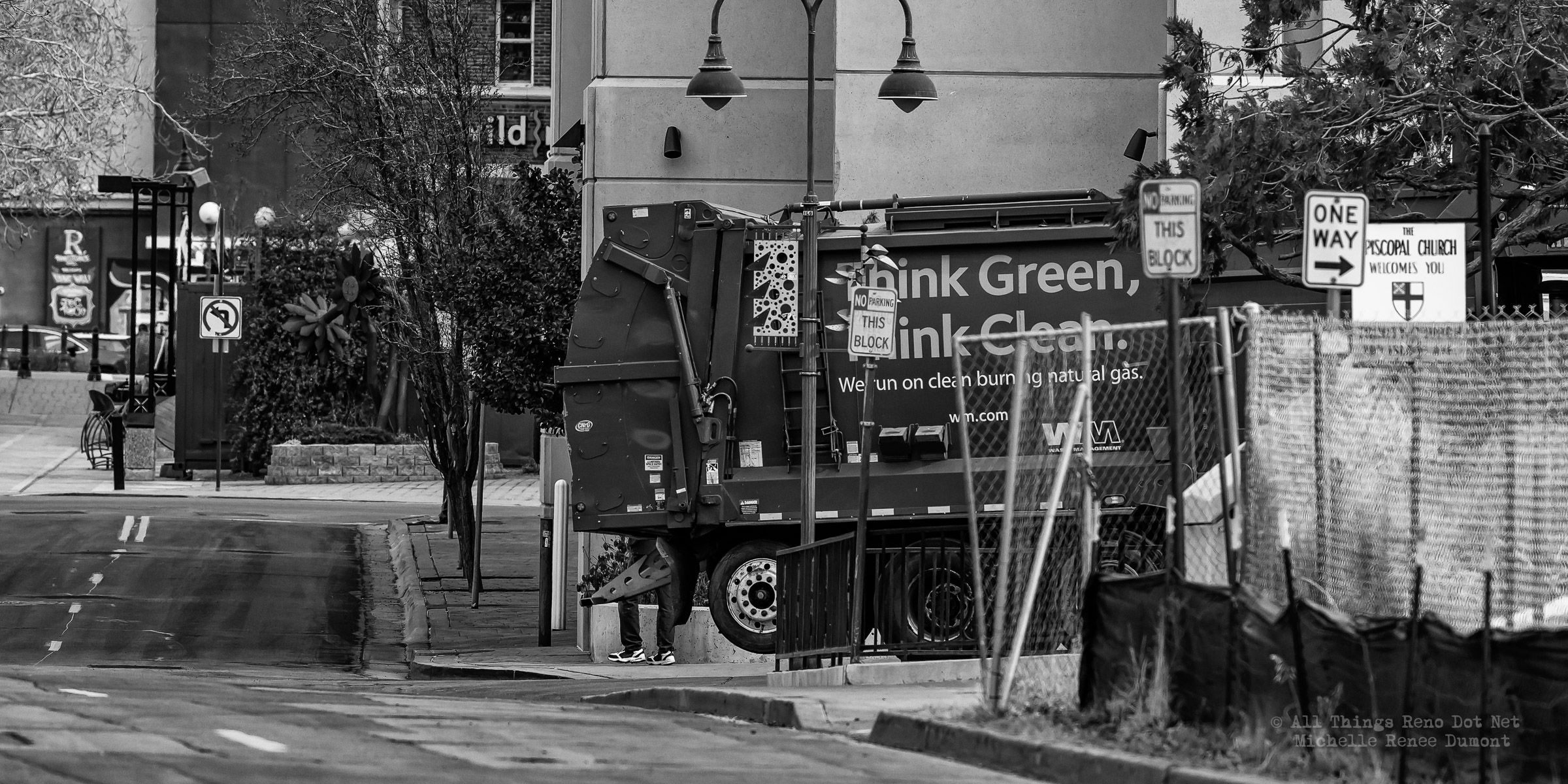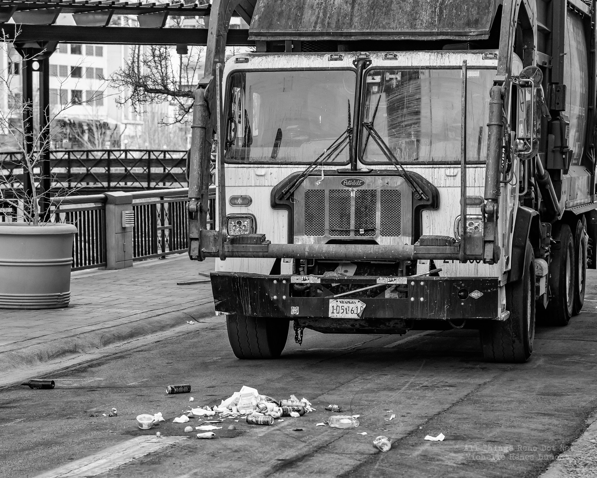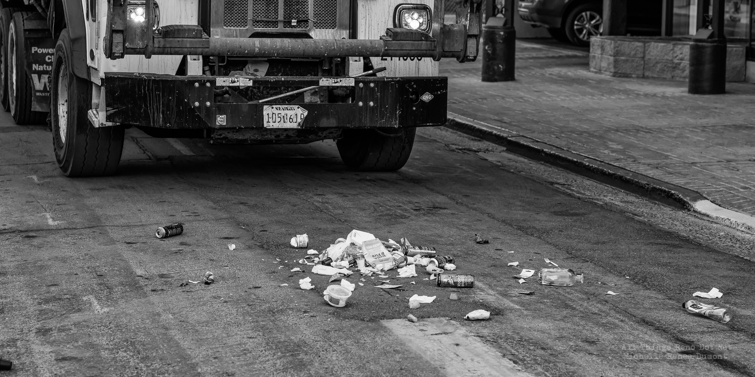 Watched the operator of this Waste Management truck load a dumpster onto the forks of the truck, lift the container and while the container was in the air several items fall to the ground. Once he emptied the container and returned it to the building, I was expecting him to grab a shovel or broom and pick up the mess, but…
