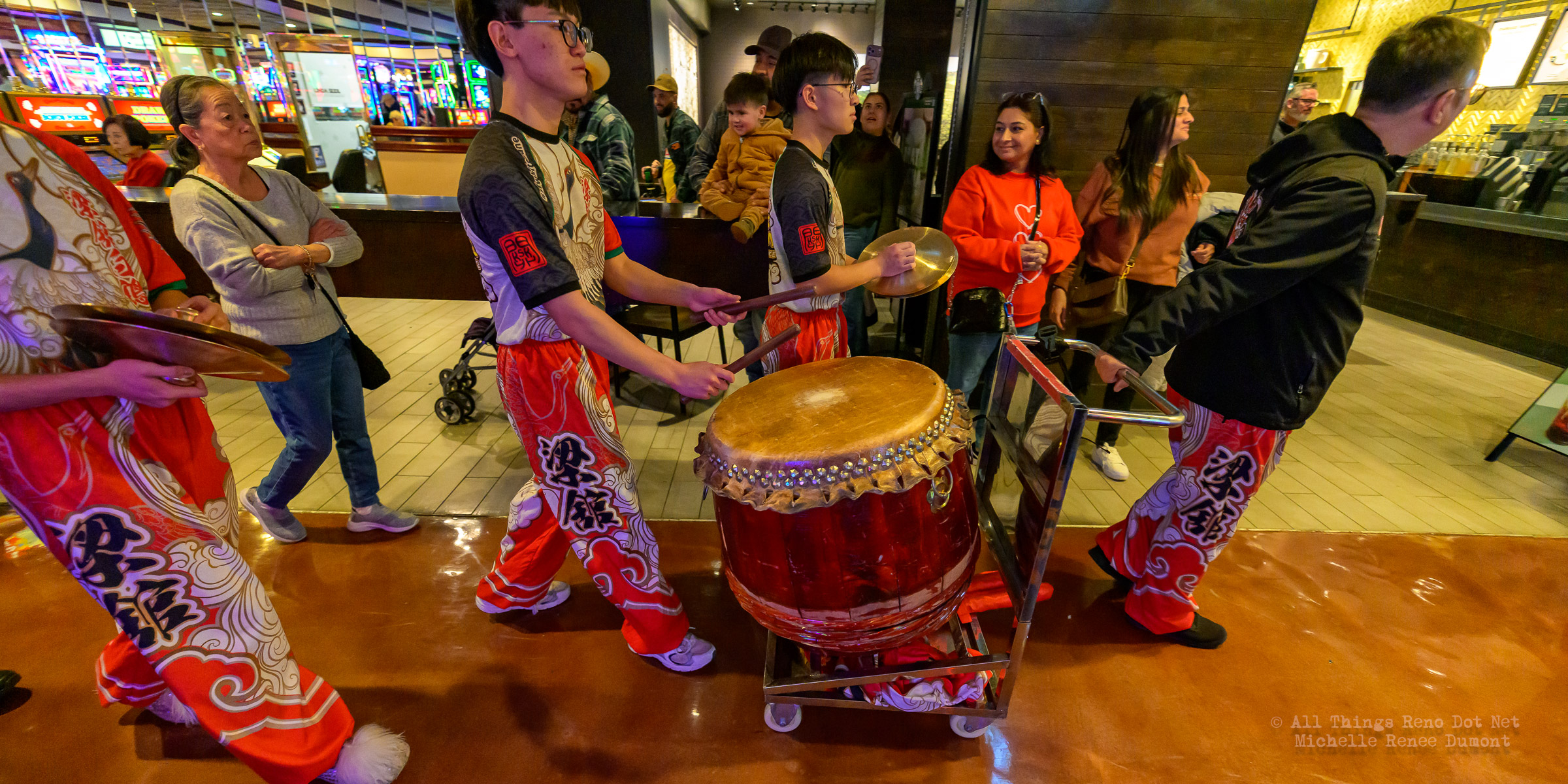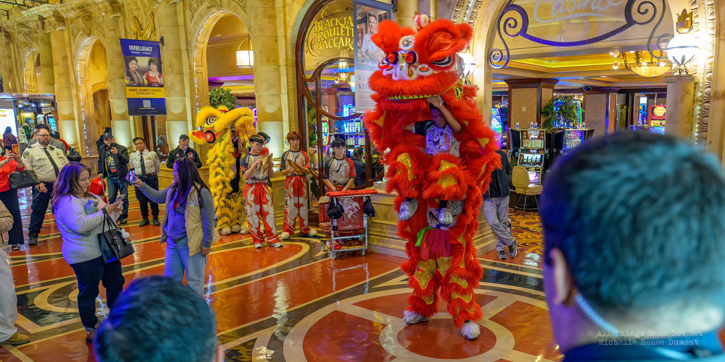 Members of Leung’s White Crane Dragon & Lion Dance Association of San Fransisco, CA entertained the crowds with their dragon dance in this years Lunar New Year celebration on the floor of the Silver Legacy Casino, Eldorado Casino, and Circus Circus Reno.