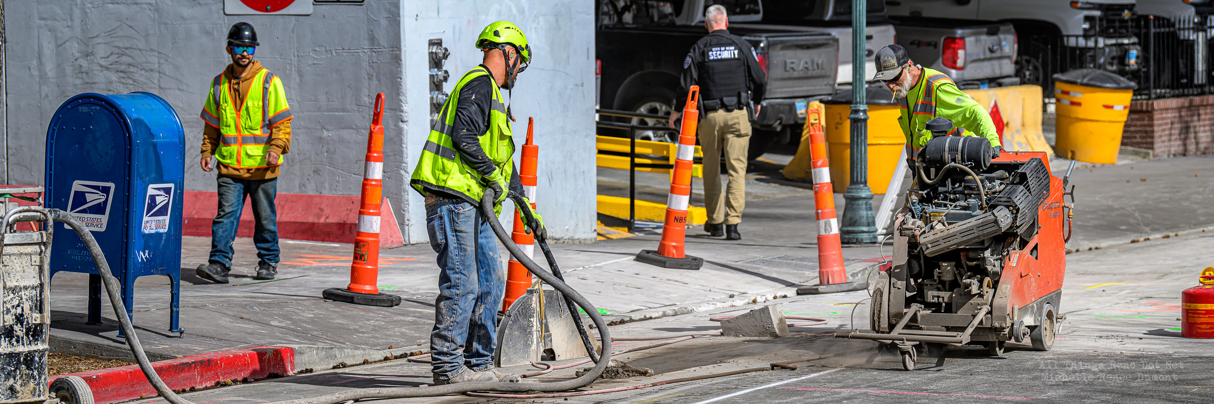 Concrete cutting going on downtown, preparing to dig a trench along First Street to work on underground utilities or drainage?