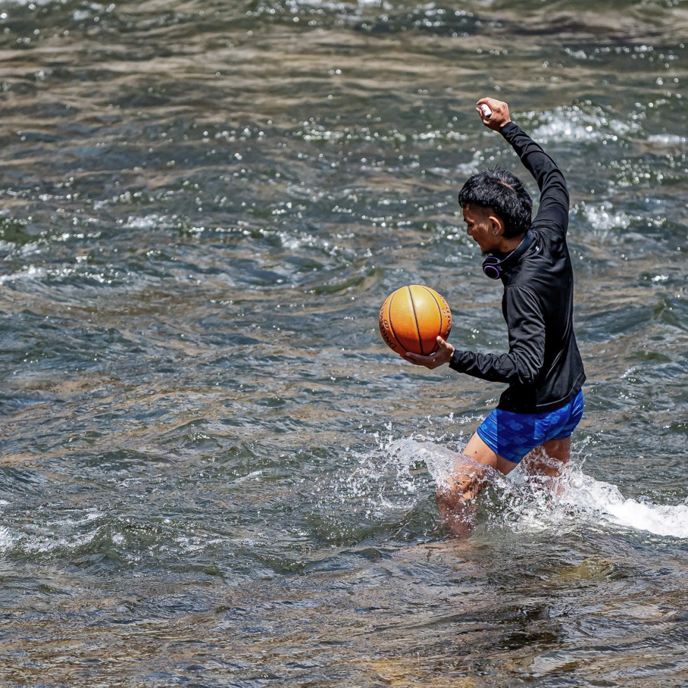 Lost basketball retrieval in a fast moving River